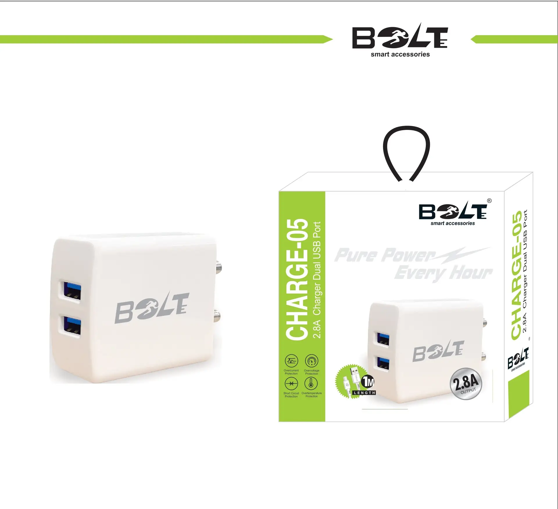 PRODUCT DETAILS : BCH 05 2.8A MICRO USB (V8) DUALPORT